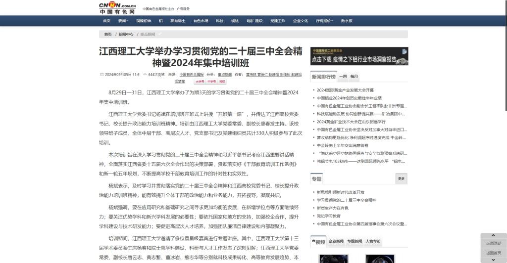 举办了为期3天的学习贯彻党的二十届三中全会精神暨2024年集中培训班。