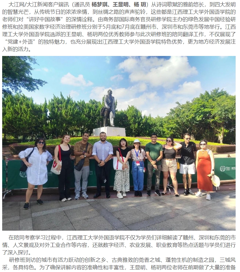 给研修班提供高质量语言服务和翻译工作的同时,也促进了国际社会对赣州乃至中国发展成就的深入了解,为地方对外交流与合作搭建了坚实的桥梁。