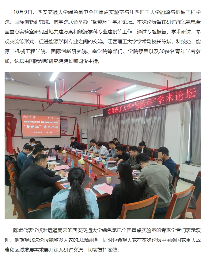 能源与机械工程学院、国际创新研究院、商学院联合举办“聚能环”学术论坛。本次论坛旨在研讨绿色氢电全国重点实验室研究基地共建方案和能源学科专业建设等工作,通过专题报告、学术研讨、参观交流等形式,促进能源学科专业之间的交流。百家乐