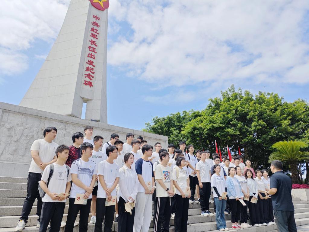 “90年前,同样在于都河畔,一支8.6万人的大军在四天四夜陆续渡河,踏上了震惊世界的远征。一条河,就此与一个民族息息相关。一群人,从此决定了一个国家的命运。”在于都中央红军长征集结出发历史博物馆,师生们瞻仰中央红军长征出发纪念碑、观看情景剧《告别》、聆听革命故事,大家在可视、可听、可感的沉浸式体验中重温革命历史,感受这片土地令人热血沸腾的红色力量。