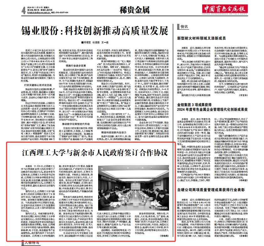 与新余市人民政府分两批次签订了 8 项合作协议:与新余市人民政府、新余学院、新钢集团签署的战略合作协议,与先进金属材料江西省实验室、分宜县科技成果转移工作站签署的合作共建协议,以及 3 项科研项目合作协议。