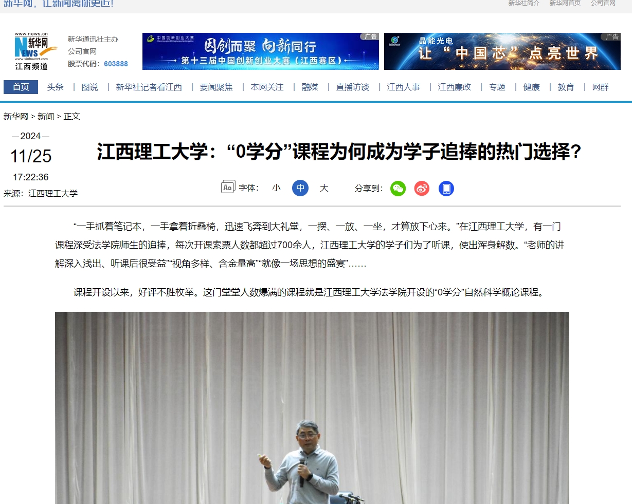 法学院开设的“0学分”自然科学概论课程。