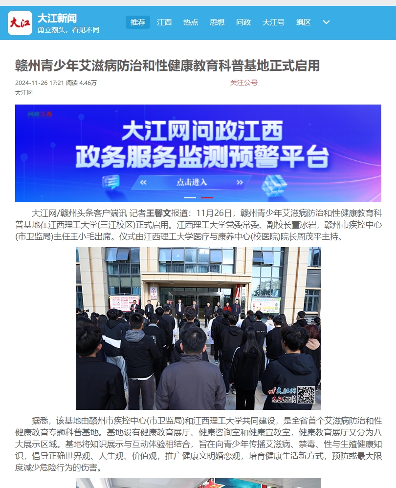 基地的建成投入使用,将为赣州市青少年提供一个崭新、高效的健康教育平台,对于提高青少年对艾滋病防治和性健康的认识,增强自我保护意识具有重要意义。