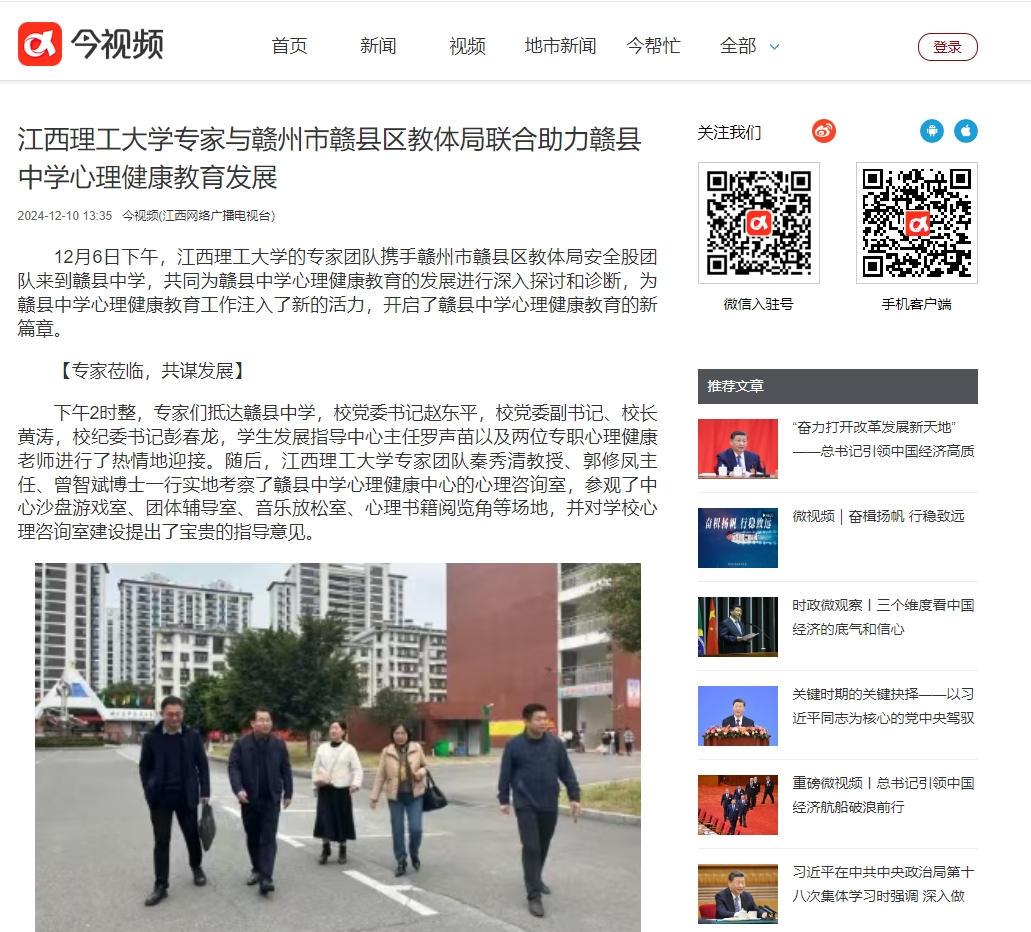 的专家团队携手赣州市赣县区教体局安全股团队来到赣县中学,共同为赣县中学心理健康教育的发展进行深入探讨和诊断,为赣县中学心理健康教育工作注入了新的活力,开启了赣县中学心理健康教育的新篇章。