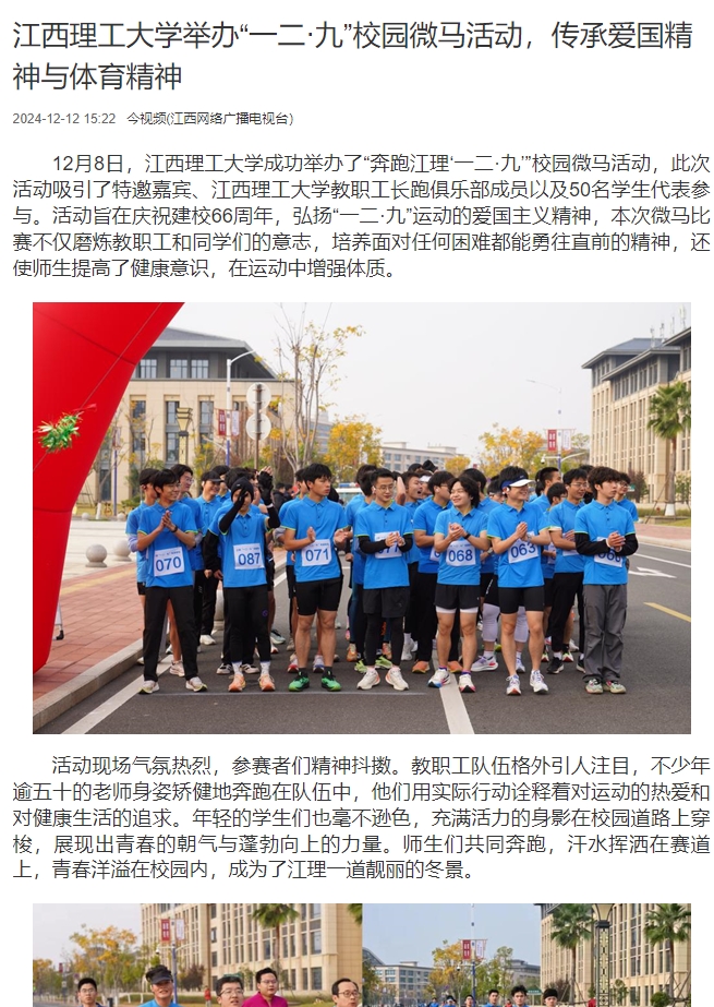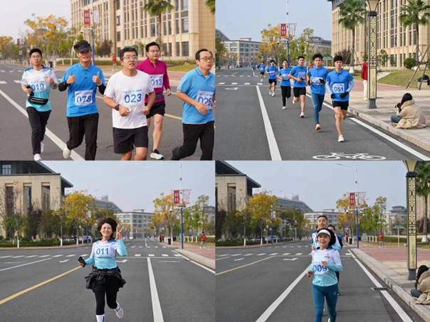 活动现场气氛热烈,参赛者们精神抖擞。教职工队伍格外引人注目,不少年逾五十的老师身姿矫健地奔跑在队伍中,他们用实际行动诠释着对运动的热爱和对健康生活的追求。年轻的学生们也毫不逊色,充满活力的身影在校园道路上穿梭,展现出青春的朝气与蓬勃向上的力量。师生们共同奔跑,汗水挥洒在赛道上,青春洋溢在校园内,成为了江理一道靓丽的冬景。