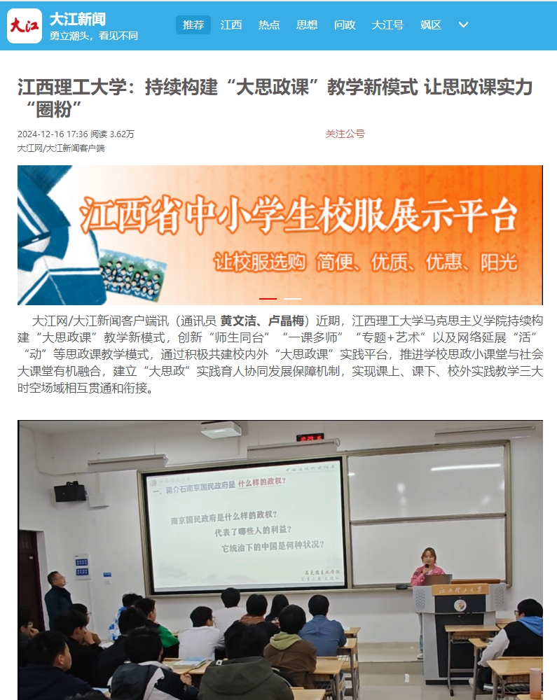 上一条:《新华网》:百家乐 :善用“大思政课”弘扬长征精神 下一条:《江西新闻》:百家乐 :持续构建“大思政课”教学新模式 让思政课实力“圈粉”