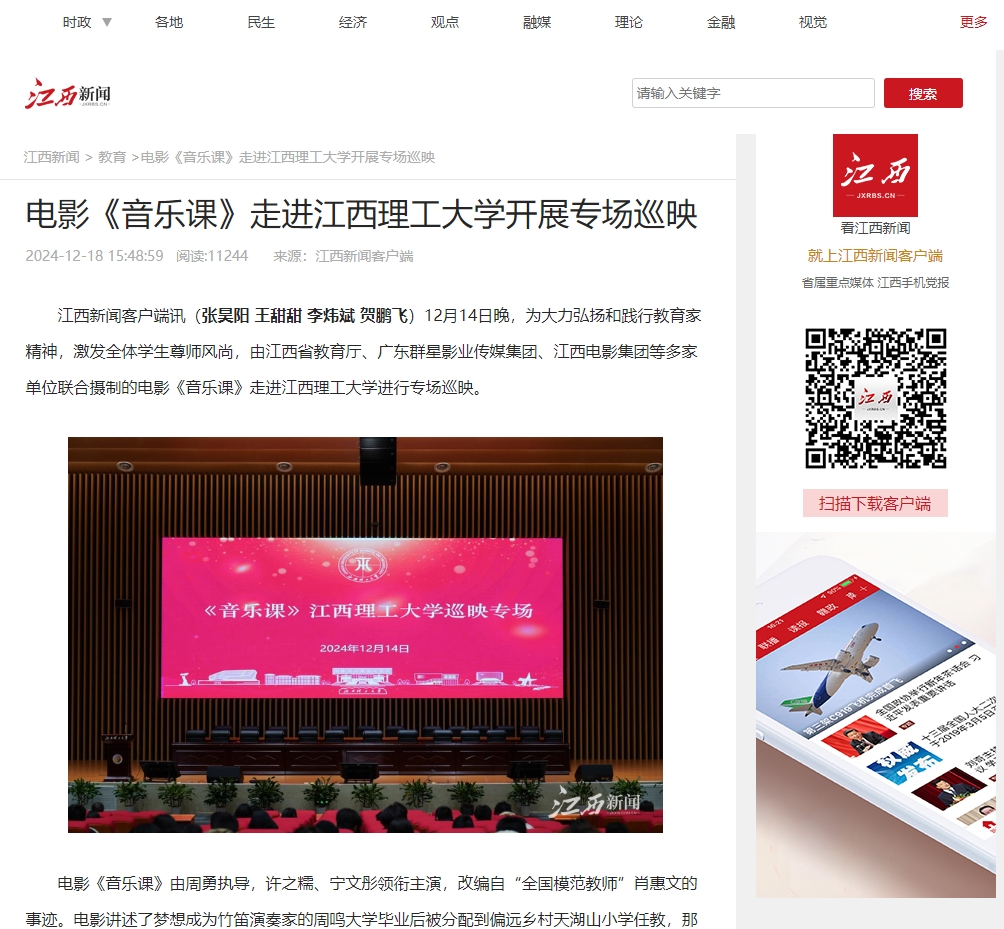 12月14日晚,为大力弘扬和践行教育家精神,激发全体学生尊师风尚,由江西省教育厅、广东群星影业传媒集团、江西电影集团等多家单位联合摄制的电影《音乐课》走进百家乐