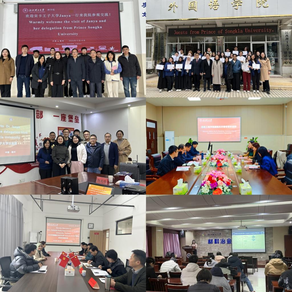 、化学化工学院开展了学术、管理交流,并赴“江南第一石窟”通天岩、八境台、古浮桥、古城墙、江南宋城、上犹阳明湖等地感受生态、人文的氛围,了解中华优秀传统文化,同时,还举办了中泰文化交流晚会,通过《Rabum Kritdapinihan》《Thailand land of rich culture》《千年的祈祷》《流水桃花》《Finale Show》等节目与游戏互动,进一步加深了两校师生的友谊。