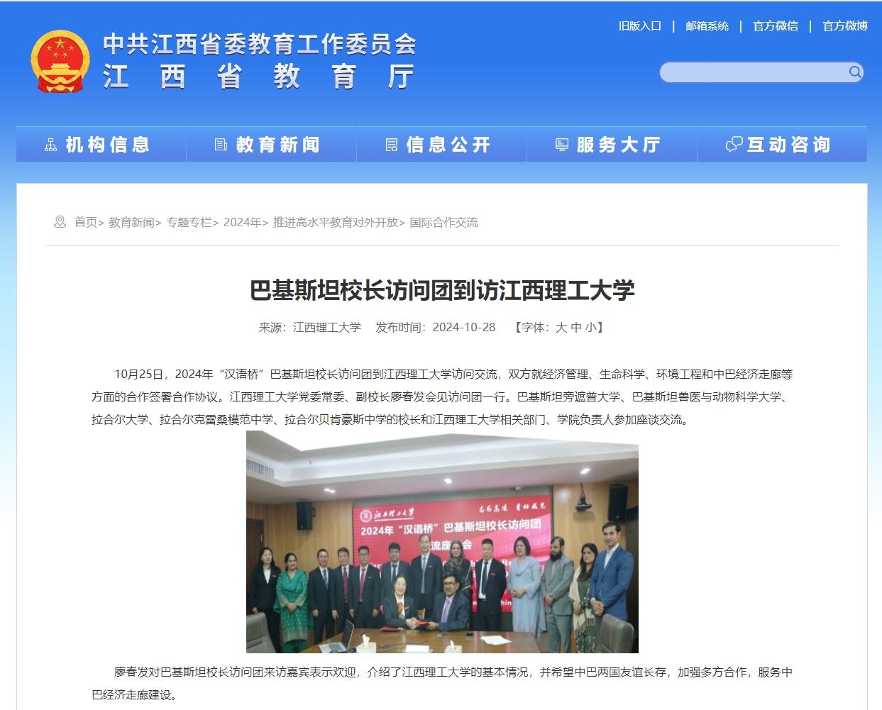 10月25日,2024年“汉语桥”巴基斯坦校长访问团到百家乐 访问交流,双方就经济管理、生命科学、环境工程和中巴经济走廊等方面的合作签署合作协议。百家乐 党委常委、副校长廖春发会见访问团一行。巴基斯坦旁遮普大学、巴基斯坦兽医与动物科学大学、拉合尔大学、拉合尔克雷桑模范中学、拉合尔贝肯豪斯中学的校长和百家乐 相关部门、学院负责人参加座谈交流。