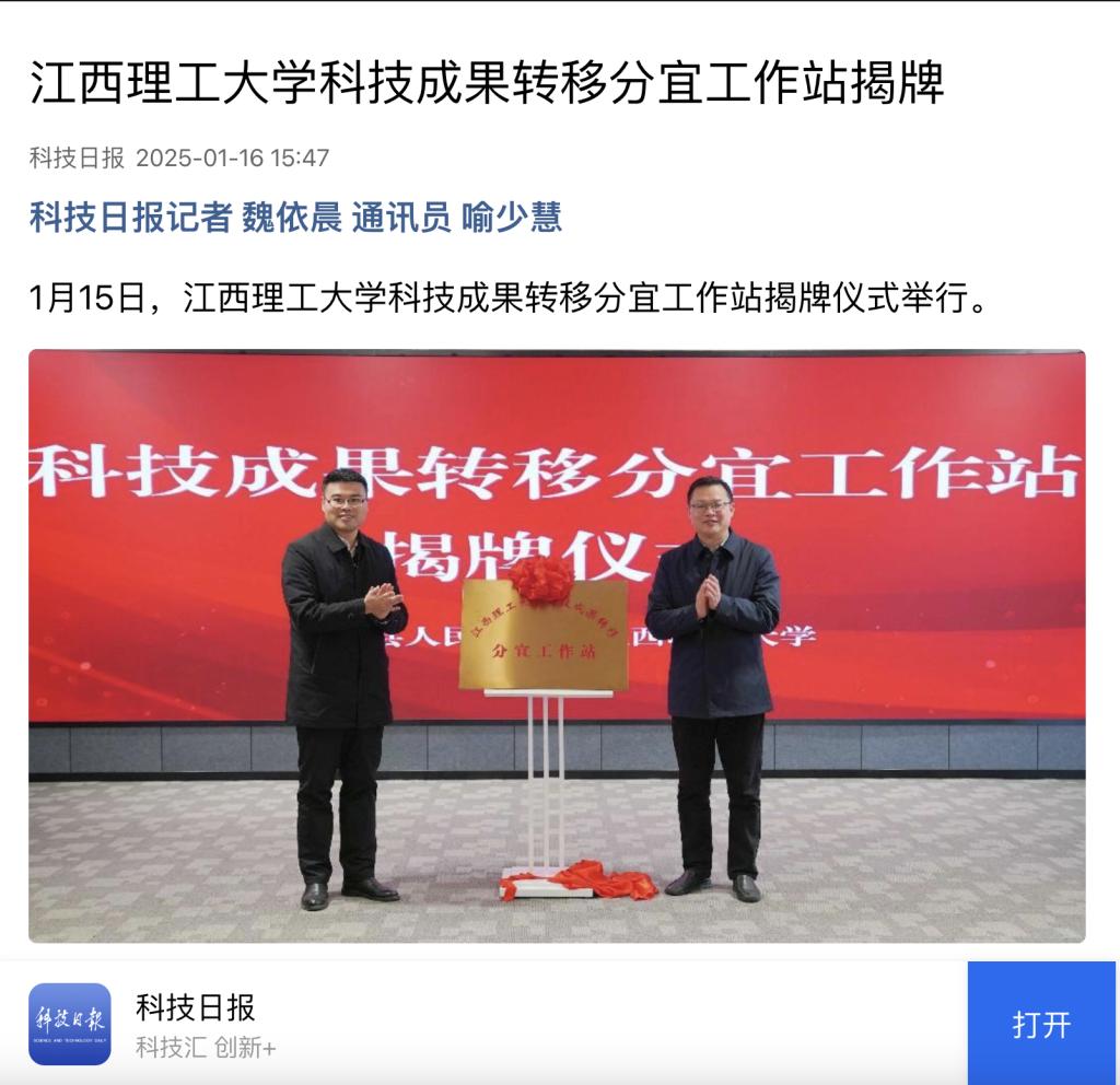 1月15日,百家乐 科技成果转移分宜工作站揭牌仪式举行。