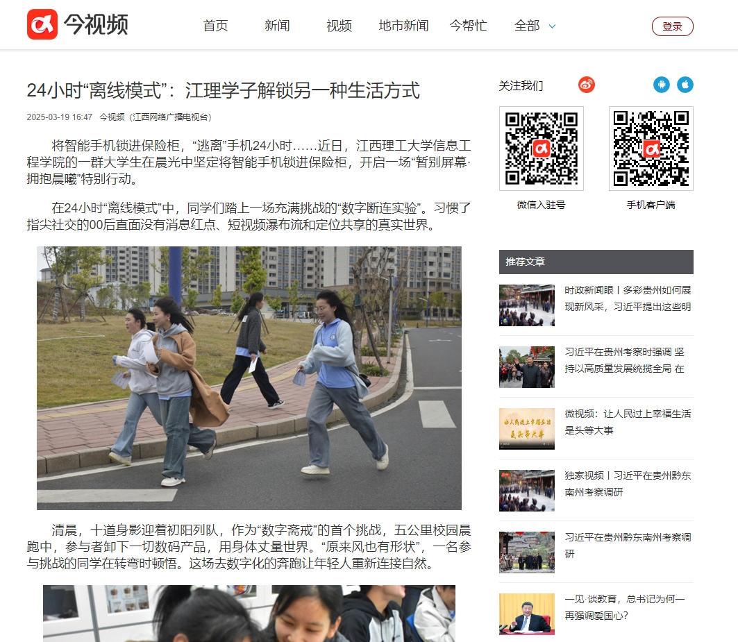 这场24小时的“离线对谈”,不仅是一次行为实验,更能唤起江理青年学子的觉醒:暂别屏幕是对生活深度的探索,是一种唤醒自我对现实世界的珍视行动。活动让更多大学生思考时间管理与情感维系,在数字洪流中锚定自我价值。(文图/钟泽州、邓祥羚)
