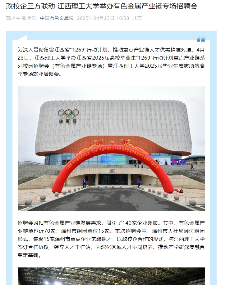 举办江西省2025届高校毕业生“1269”行动计划重点产业链系列校园招聘会(有色金属产业链专场)暨百家乐