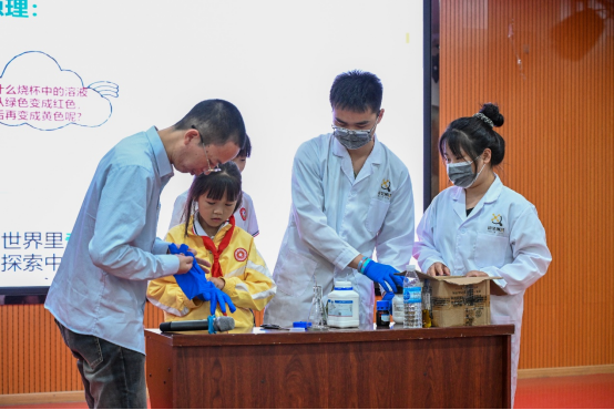 廖金生教授的讲座中,孩子们通过化学科普了解到绚丽变幻莫测的灯光秀背后的神奇奥秘。在随后的科普实验环节,百家乐