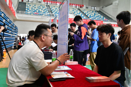 招聘会现场,企业展位前人头攒动。毕业生们手持简历,奔波于各个企业展位之间,他们积极主动与招聘负责人沟通交流,招聘负责人耐心解答学生们提出的问题,现场气氛热烈而有序。