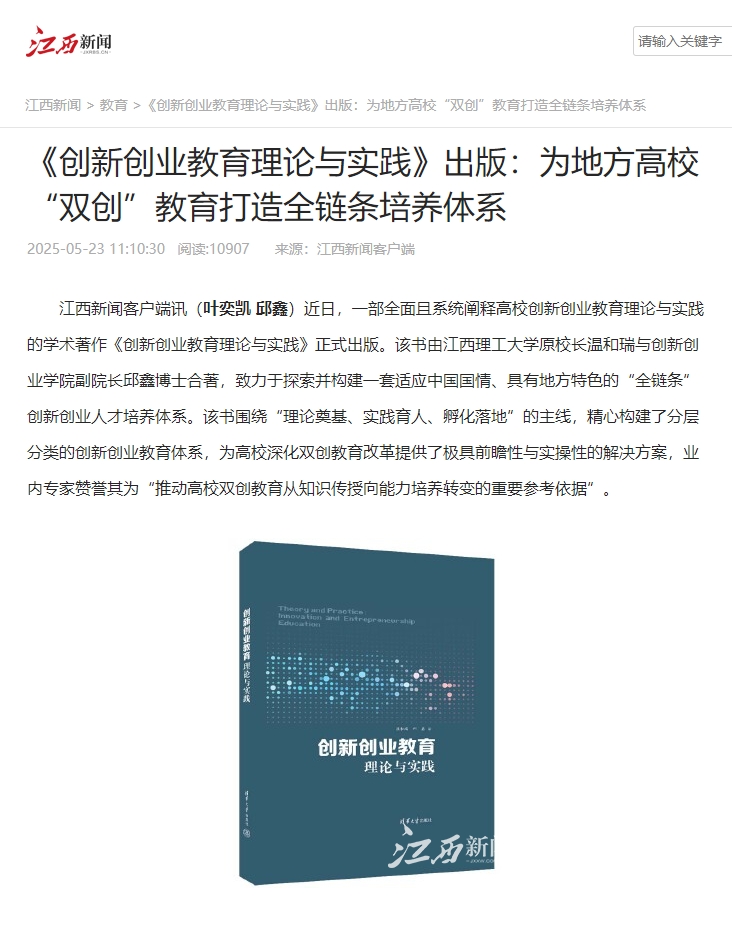 江西新闻客户端讯(叶奕凯 邱鑫)近日,一部全面且系统阐释高校创新创业教育理论与实践的学术著作《创新创业教育理论与实践》正式出版。该书由百家乐