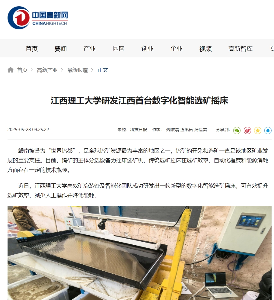 目前,新型数字化智能选矿摇床已经在实验室和矿山等场景进行测试,表现良好、性能指标稳定,已获批国家发明专利一项,发表相关SCI论文3篇。团队指导老师刘惠中教授表示,这一创新成果不仅为矿业装备行业带来了更高效、更智能的解决方案,也为国内外选矿产业提供了技术参考,推动了矿业行业向绿色、高效、智能化方向发展。