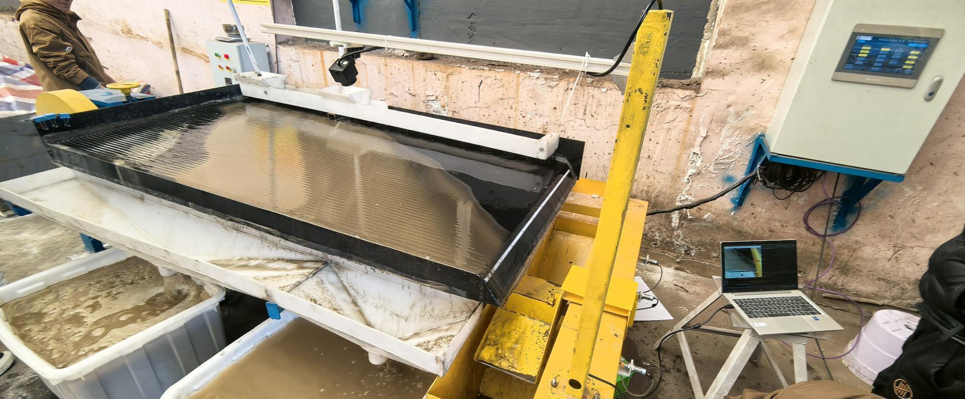 目前,摇床的操作大多依赖工人操作,需要工人观察矿带后,依据经验调整床面坡度以改变摇床的分选状态,并调整精矿截取板的位置至矿带分离点位置,实现精矿与尾矿的分离。