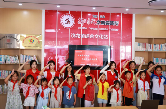 图为实践队队员同少先队员们合影 李展翼供图
