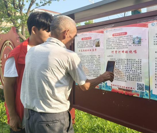 信息工程学院学子开发的“红色地图”小程序,能够实现革命遗址精准定位、图文展示及党史问答功能。课堂巧妙融合多种多媒体技术:以动态图解的形式阐释党旗的象征意义,进行少先队标准队礼的互动教学,在红歌合唱时同步投影历史影像。此外,实践队队员创新制作的“红色故事有声墙”亮相在村庄宣传栏,村民扫码即可收听红色故事。这些多维技术手段,让红色教育深深扎根童心,也走进了寻常百姓的生活。