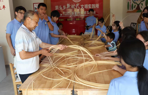 图为队员与孩子们在向非遗传承人学习竹编技艺 张雨琛 供图