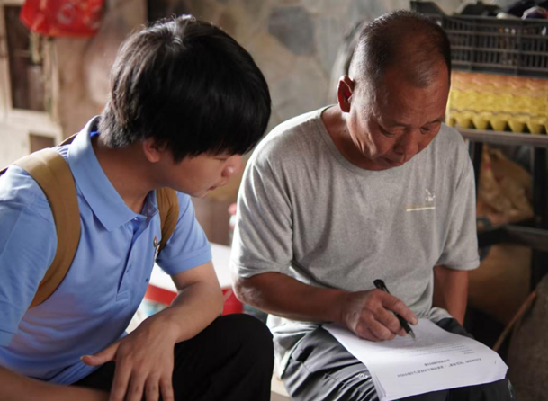 图为队员入户访谈,聆听畲族老人讲述传统防灾经验 马健平 供图