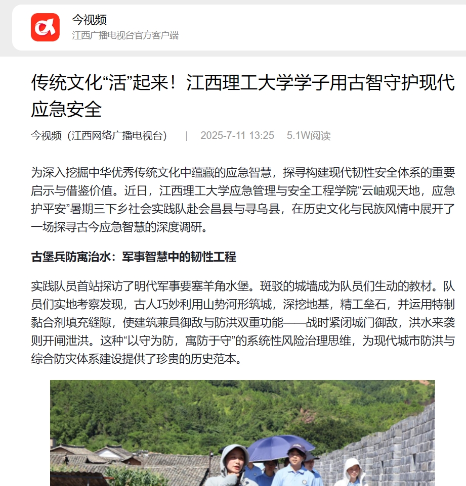 应急管理与安全工程学院“云岫观天地,应急护平安”暑期三下乡社会实践队赴会昌县与寻乌县,在历史文化与民族风情中展开了一场探寻古今应急智慧的深度调研。