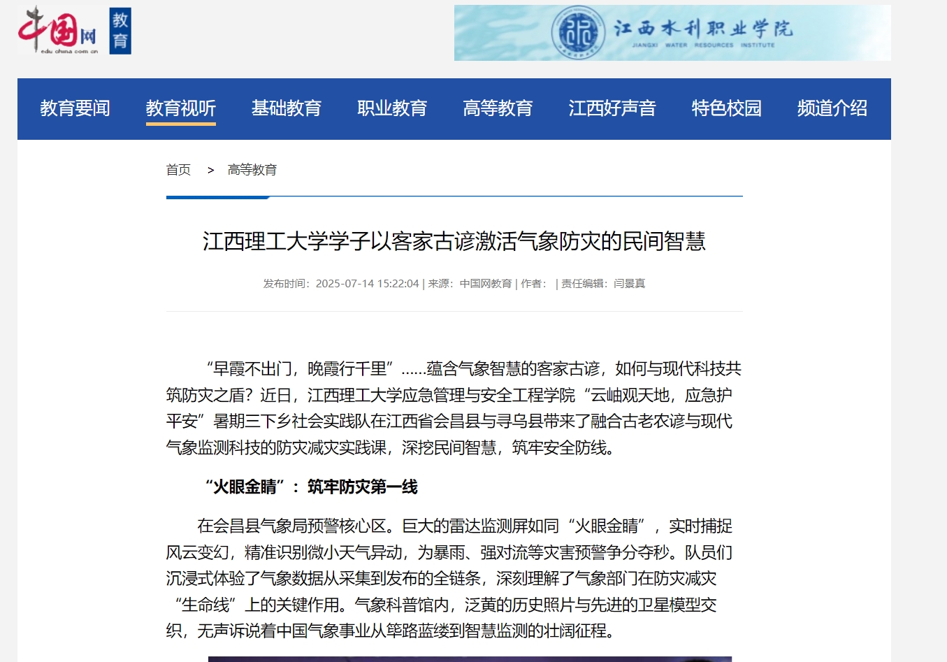 应急管理与安全工程学院“云岫观天地,应急护平安”暑期三下乡社会实践队在江西省会昌县与寻乌县带来了融合古老农谚与现代气象监测科技的防灾减灾实践课,深挖民间智慧,筑牢安全防线。