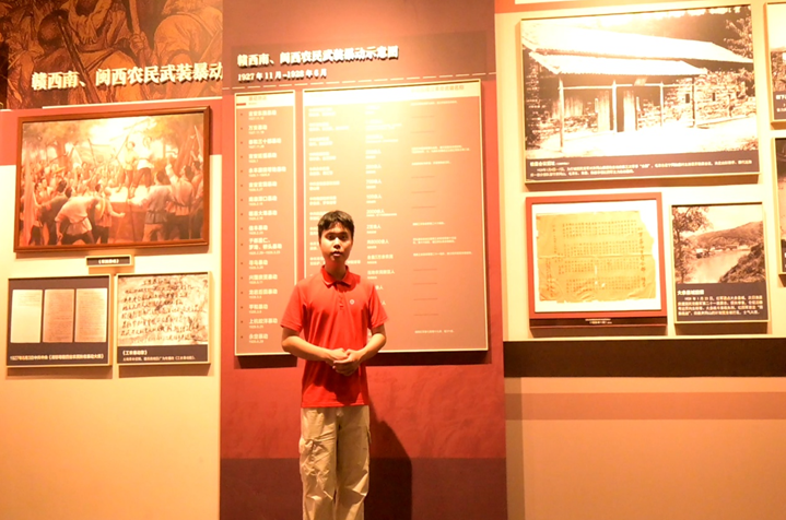 (图为校史馆讲解员吴雨航在博物馆串联苏区精神 周煌浚 摄)