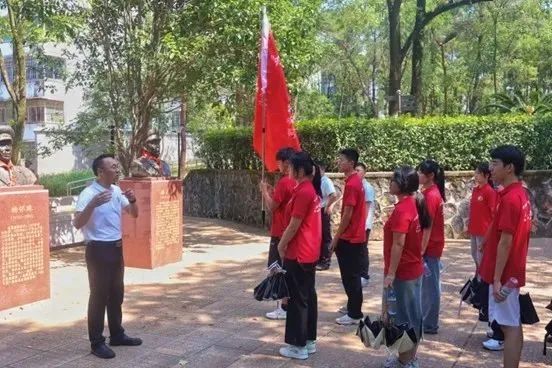 能源与机械工程学院党委书记饶先发以吉安县开国将军的光辉事迹为教材,现场讲述将军们艰苦卓绝的奋斗历程。队员们驻足将军塑像前,凝视历史印记,深刻感悟革命先辈为民族解放建立的卓越功勋,经历了一次深刻的理想信念洗礼。