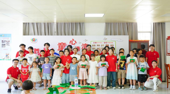 实践队员和孩子们制作“红军包”后合影