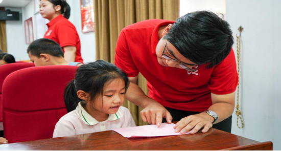 实践队员耐心地为儿童讲解法律知识
