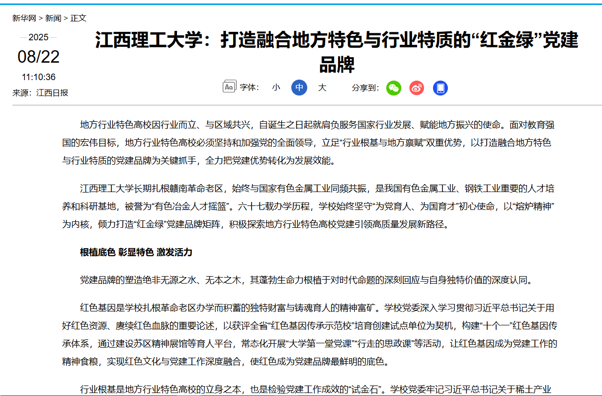 长期扎根赣南革命老区,始终与国家有色金属工业同频共振,是我国有色金属工业、钢铁工业重要的人才培养和科研基地,被誉为“有色冶金人才摇篮”。六十七载办学历程,学校始终坚守“为党育人、为国育才”初心使命,以“熔炉精神”为内核,倾力打造“红金绿”党建品牌矩阵,积极探索地方行业特色高校党建引领高质量发展新路径。