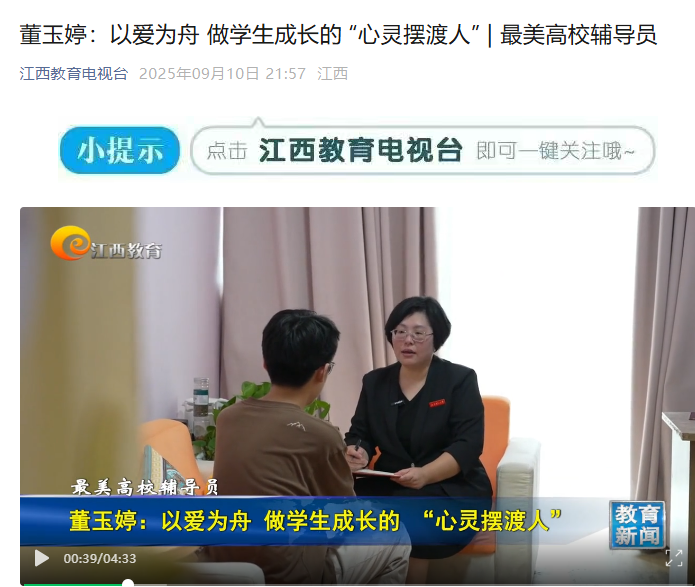 上一条:《江西广播电视台官方客户端》: 耕耘育才 匠心筑梦 下一条:《当代江西》:21年,这位“最美辅导员”如何“自我拆解”