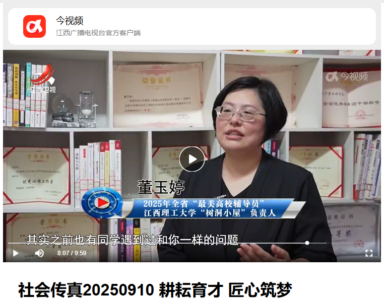 上一条:《江西新闻》:“家文化”暖人心——从家门到校门,百家乐 陪伴护航逐梦路 下一条:《江西教育电视台》:董玉婷:以爱为舟 做学生成长的 “心灵摆渡人” | 最美高校辅导员