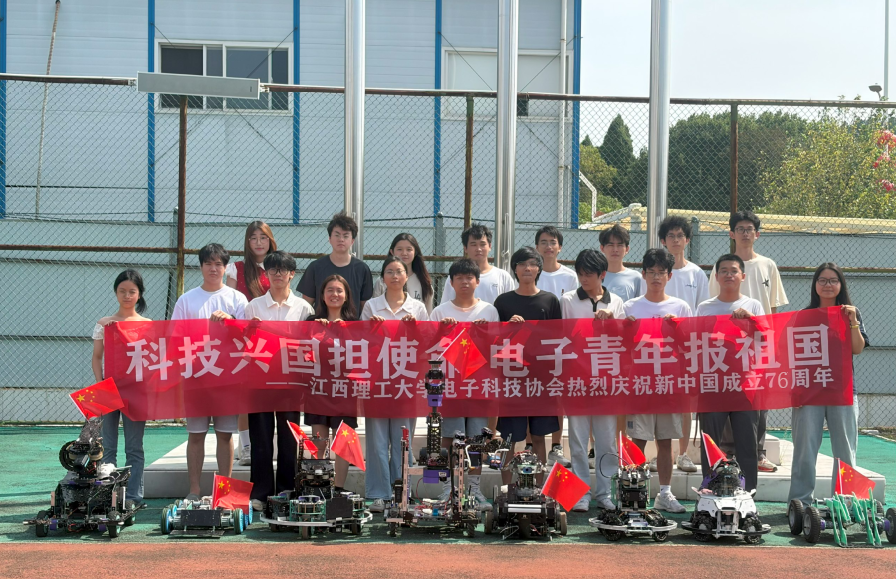 电子科技协会的ROBOMASTER机器人方阵亮相升旗仪式,以一场“静默的致敬”为祖国母亲献上江理学子的科技贺礼。