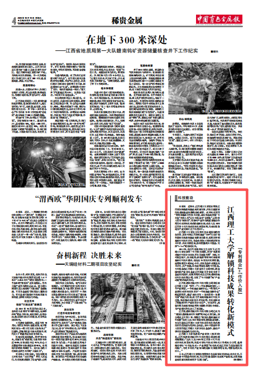 将继续聚焦有色金属领域关键核心技术攻关,不断完善专利组合转化机制,为江西打造全国有色金属产业高地、实现制造业高质量发展贡献更多“江理力量”。(何熠楠)