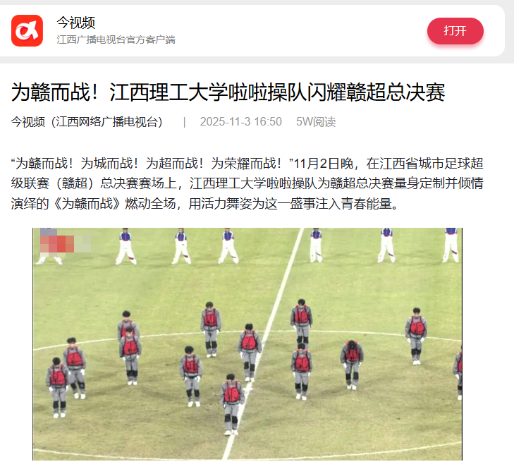 啦啦操队为赣超总决赛量身定制并倾情演绎的《为赣而战》燃动全场,用活力舞姿为这一盛事注入青春能量。