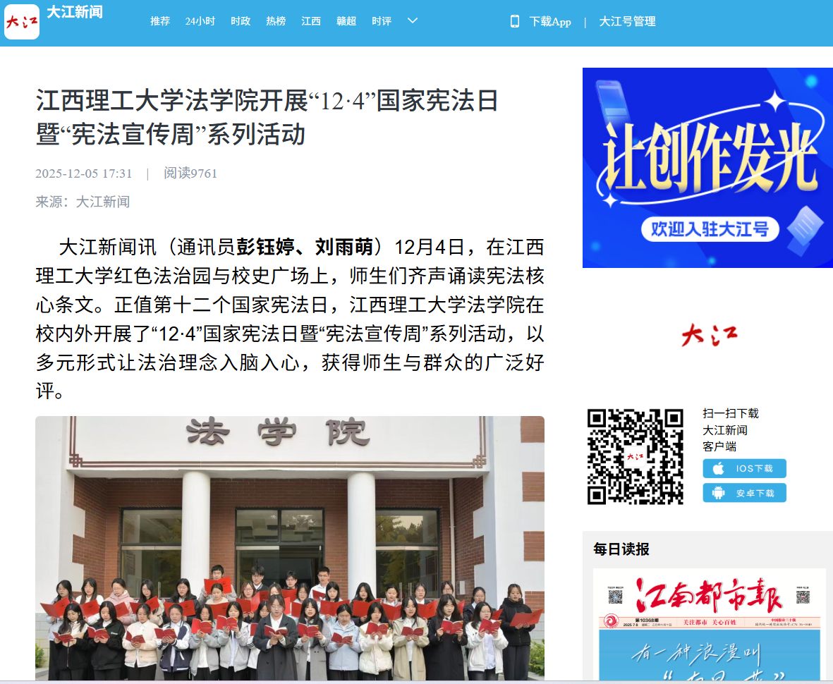 红色法治园与校史广场上,师生们齐声诵读宪法核心条文。正值第十二个国家宪法日,百家乐