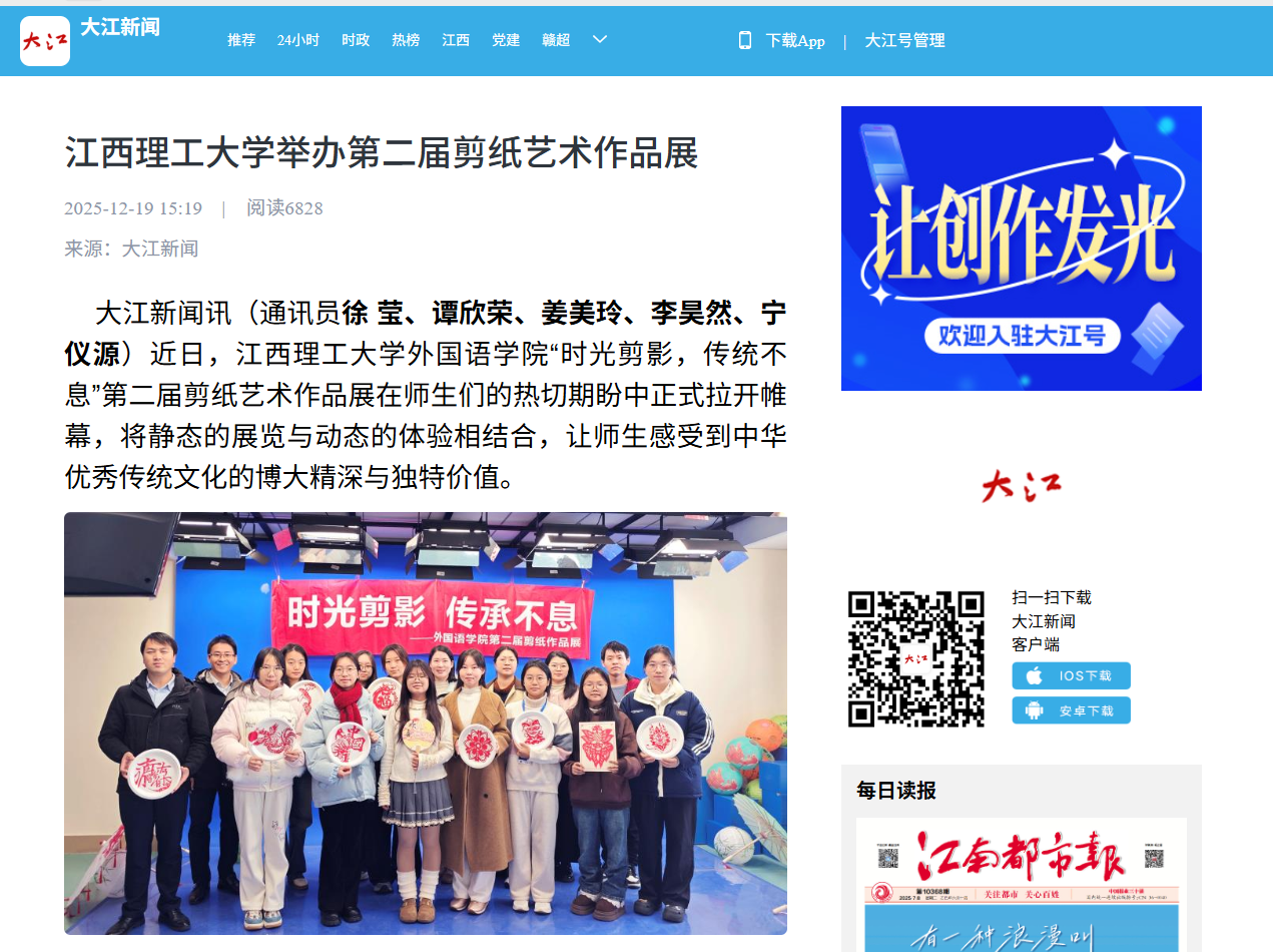 教师黄维清表示,此次展览不仅是剪纸艺术的展示,更是一堂生动的“第二课堂”,旨在引导青年在实践中增强文化自信,提升实践能力,让文化传承在亲身体验中扎根。