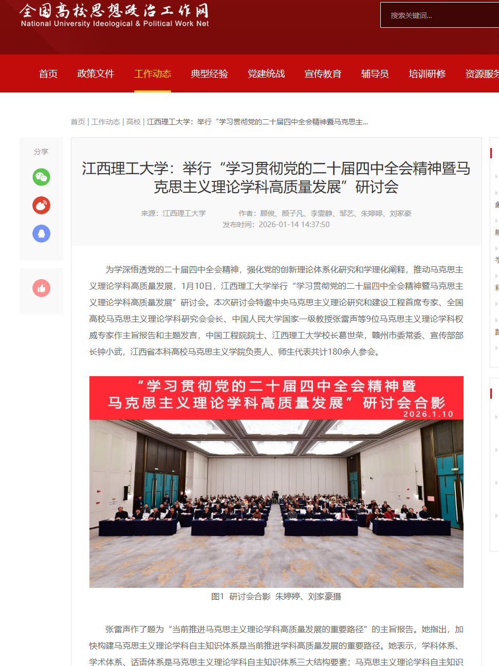 校长葛世荣,赣州市委常委、宣传部部长钟小武,江西省本科高校马克思主义学院负责人、师生代表共计180余人参会。