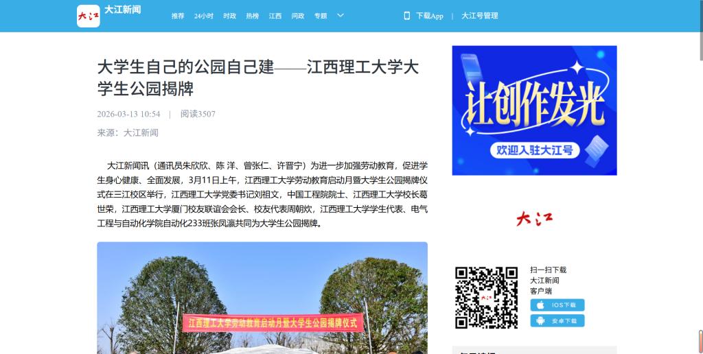 劳动教育启动月暨大学生公园揭牌仪式在三江校区举行,百家乐