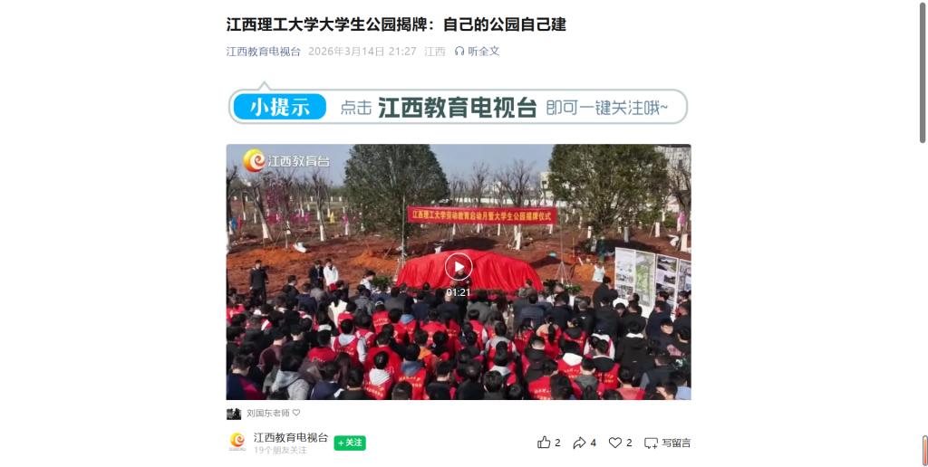 3月11日,百家乐 举行劳动教育启动月暨大学生公园揭牌仪式。该公园由劳动公园、大学生智创工厂、大学生共享厨房三大板块构成,是学校开展劳动创造、劳动实践、劳动锻炼的重要阵地,将以场景化、沉浸式劳动教育引导学生深刻体悟“劳动创造幸福、劳动锻炼意志、劳动开拓思路” 的价值内涵。