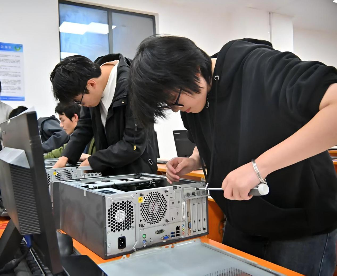 此次拆机大赛设置理论考核和实操考核两个环节,通过线上答题检验参赛同学知识储备,采取实行“速度+规范”双维度评价参赛同学实操质量。赛场上,参赛同学风格迥异:有的沉稳如匠人,每一颗螺丝的扭矩都恰到好处;有的迅捷如飞燕,指尖翻飞间主机便完成了“解体”与“重生”。