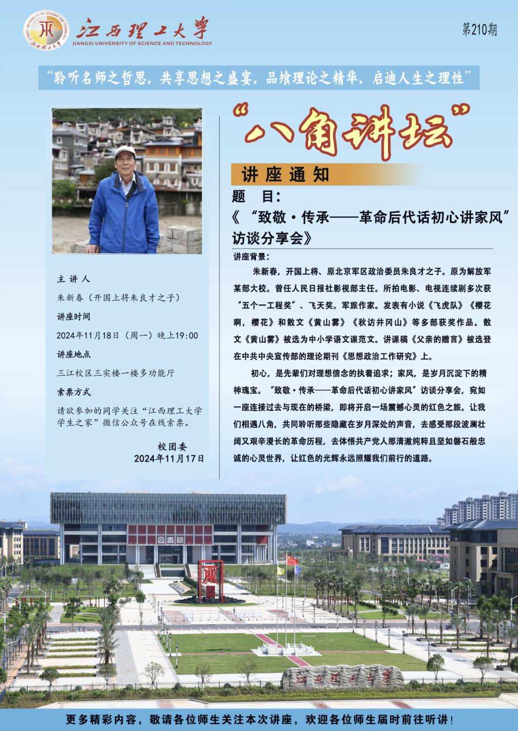 讲座题目:《“致敬·传承--革命后代话初心讲家风”访谈分享会》