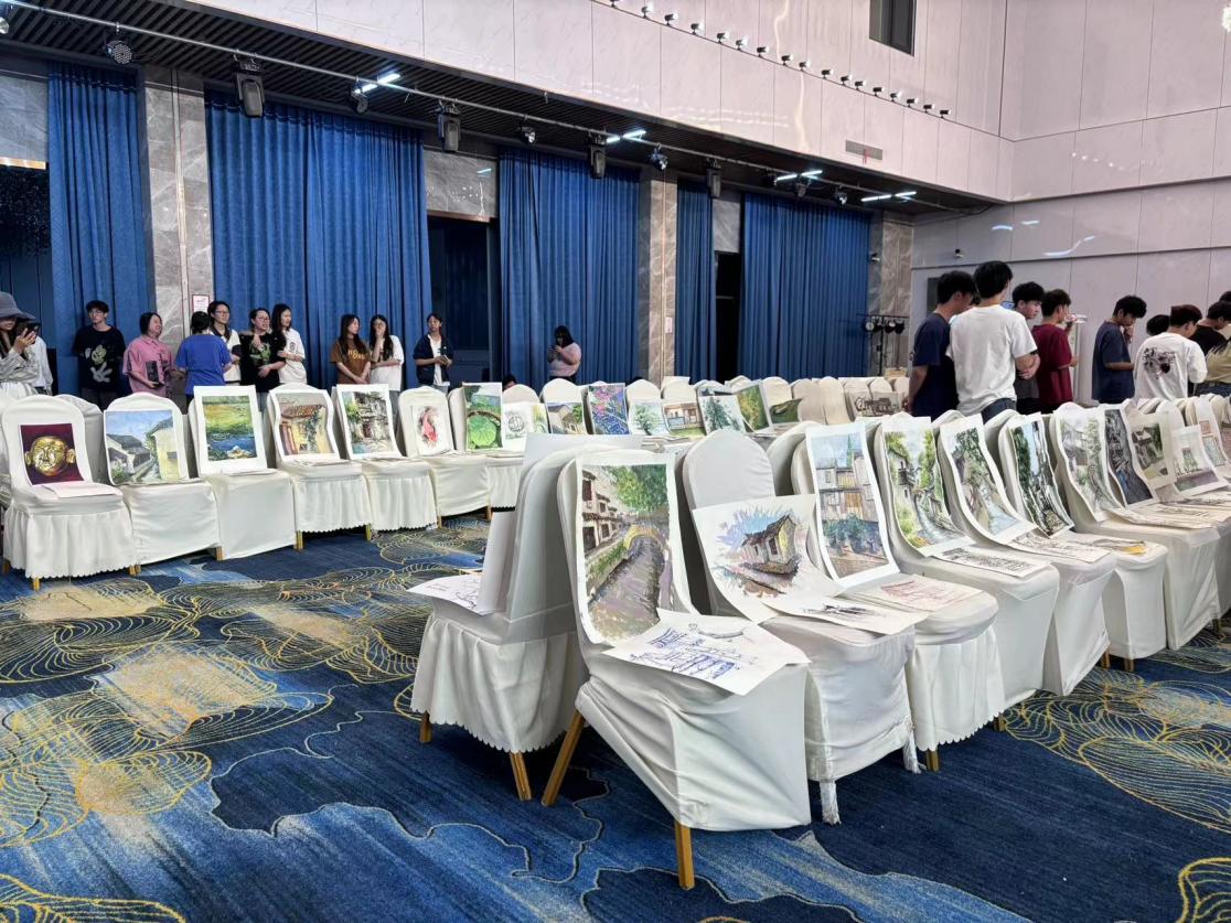 建筑与设计学院“画入姑苏、古韵新风——2024苏州甪直色彩风景写生现场作业展”在苏州国际艺术大酒店大厅举行。本次活动由建筑与设计学院张红、雷佳佳、谢人雁、李润松、廖智悦和郭文瞻6名教师组成指导团队,带领23级设计学专业的198名学生,走进甪直,用画笔记录下这里的美景和风情,共计展出师生作品三百余幅。