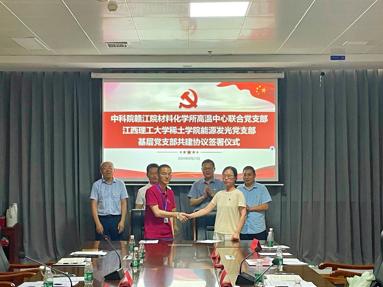 稀土学院能源发光党支部与中国科学院赣江创新研究院材料化学所高温中心联合党支部联合结对共建开展主题党日活动,中国科学院赣江创新研究院党委委员、副院长廖伍平,百家乐