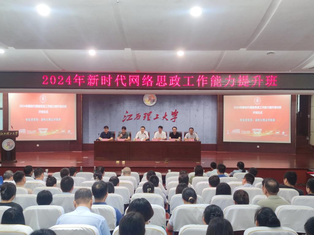 在南昌校区举办了2024年新时代网络思政工作能力提升班。校党委常委、副校长龚姚腾、熊志华出席相关活动,校党委学生工作部、保卫处、党委研究生工作部、招生就业处、校团委、南昌校区管委会相关负责人,各学院负责学生工作领导,各学院专兼职辅导员等120余人参加了本次素质能力提升班。