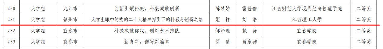 经学校遴选推荐,省委教育工委、省教育厅线上、线下评审,百家乐 学生作品《今朝承志迎挑战,平芜尽处是春山》(郑博,指导老师:戴卫杰)荣获一等奖,《大学生眼中的党的二十大精神指引下的科教与创新之路》(姬祥,指导老师:刘浩)荣获二等奖,《科学引领青春,青春铸就时代》(曹丽敏,指导老师:赵金凡)、《初心如磐终不移,砥砺奋进创新高》(董龙欣,指导老师:郭晟)、《盛世之言》(吴俊霖,指导老师:赖晓花)荣获三等奖。