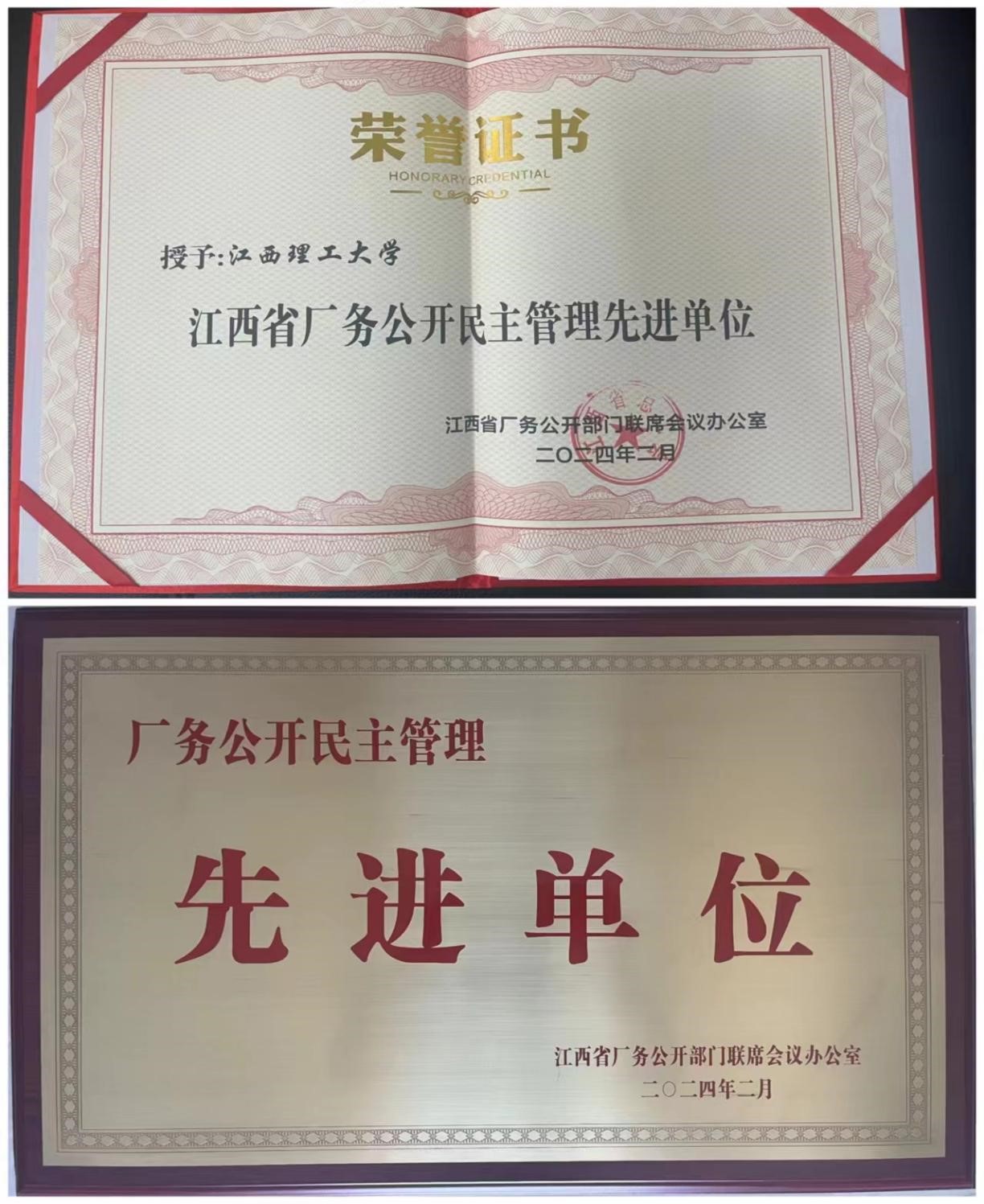 本网讯 近期,百家乐 在全省厂务公开民主管理工作评选中荣获“江西省厂务公开民主管理先进单位”称号。