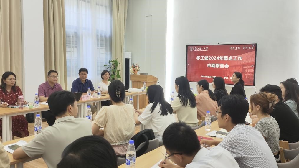 本网讯 8月26日上午,党委学生工作部在三实楼一楼心理健康教育中心团辅室召开了2024年重点工作中期报告会。校党委常委、副校长熊志华出席,学工部全体人员、6名学院代表及新入职辅导员参加。会议由校党委学生工作部部长贾群燕主持。